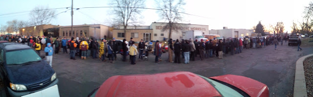 People waiting in line on Darkness Day when it was 28 degrees out. Fun! |